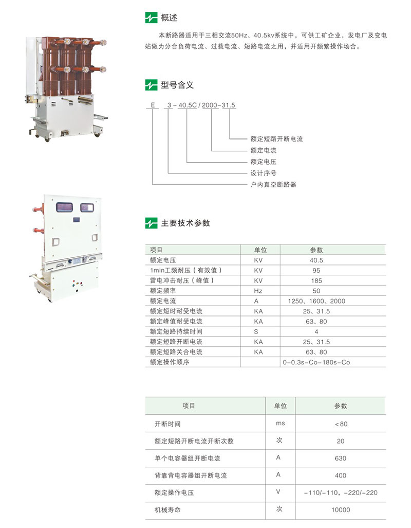 E3-40.52000-31.5型戶內(nèi)高壓真空斷路器