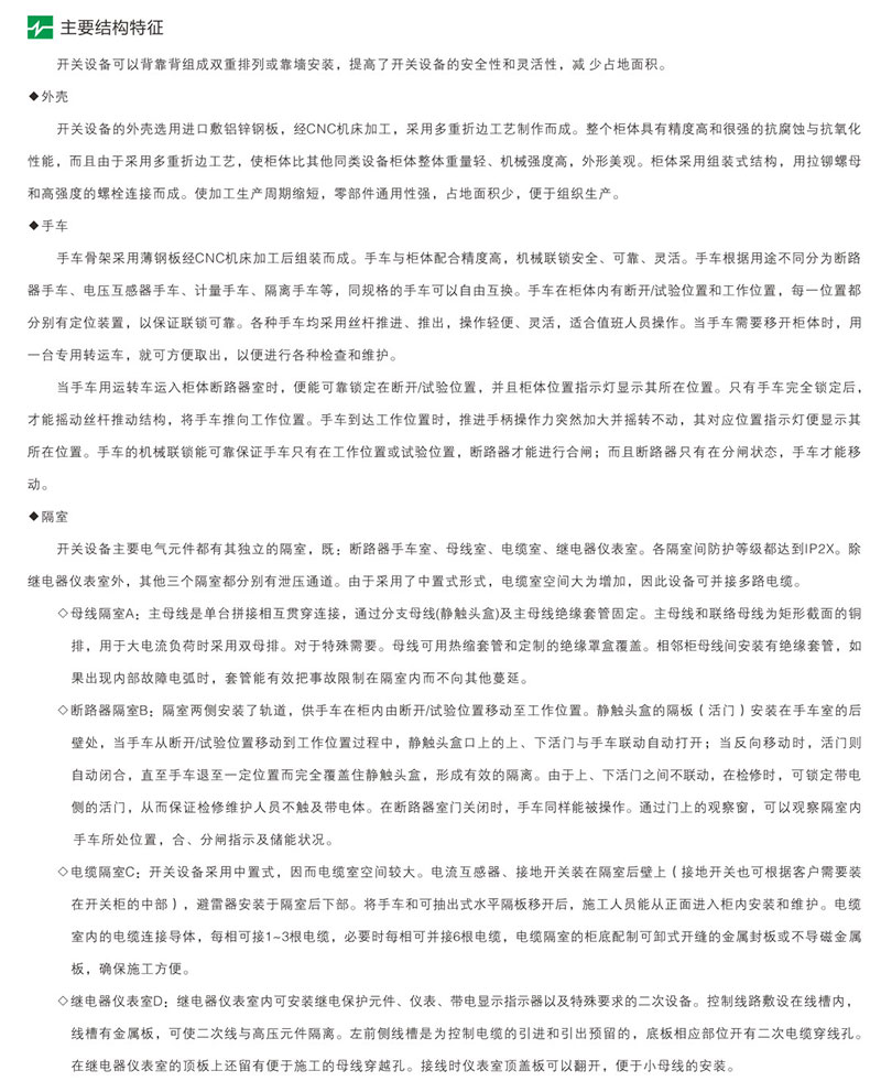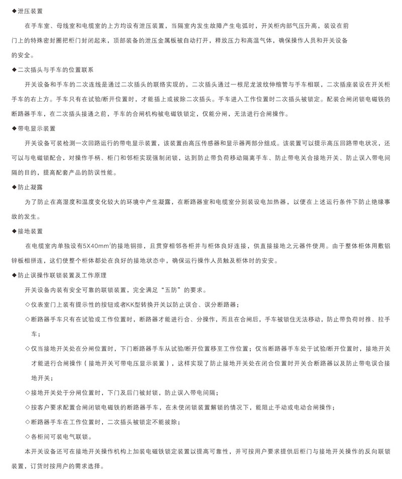 本公司生產(chǎn)銷售的產(chǎn)品有箱式變電站、KYN61-40.5、KYN28A-24、XLM系列充氣式(全密封)環(huán)網(wǎng)柜、GTXGN-12系統(tǒng)智能固體絕緣柜,GGJ、GGD、GCS、GCK、MNS、XL-12、GGD、PZ30等低壓開關(guān)柜。變壓器、真空斷路器、負(fù)荷開關(guān)、隔離開關(guān)、SF6斷路器等高壓元件多年來,持續(xù)為冶金、船舶、航天電力、礦山、以及智能化大樓、高層建筑、醫(yī)院、各大院校等行業(yè)提供高質(zhì)量產(chǎn)品及完善的售后服務(wù)