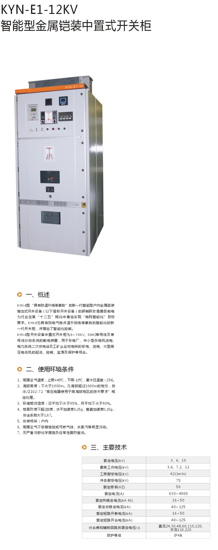 KYN-E1-12KV智能型金屬鎧裝中置式開關(guān)柜
